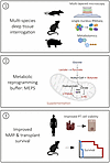 Normothermic machine perfusion (NMP) has become a valuable tool to expand the pool of transplantable organs. However, the application of NMP to kidneys presents substantial challenges, mostly due to high variability in the composition of currently used perfusion solutions. Here, we provide a multimodal cross-species cellular atlas of kidney injury associated with NMP using a literature-based consensus buffer. This resource provided a systematic framework that was used to develop a metabolite-enhanced perfusion solution, which protected renal proximal tubular cells, improving cellular viability and transplantation outcomes across species, including human kidneys.