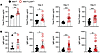 Statistics. GraphPad Prism 8 software was used to perform statistical analyses and specific statistical tests used are listed in individual figure legends. Multiple t tests were performed with corrections for multiple comparisons using the Holm-Sidak method, while 2-tailed unpaired t tests were used where indicated in figure legends. P < 0.05 was considered statistically significant and specific P-value identifiers are listed in each figure legend. Some data sets were checked for statistical outliers using the GraphPad Prism outlier calculator with an α of 0.05; if a data point was determined to be a significant outlier it was not included in the graphs or when calculating statistical significance.